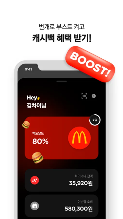 - 바로바로 쌓이는 캐시백을 앱에서 한눈에 확인하고 현금처럼 사용하세요