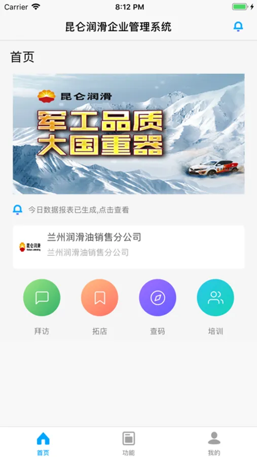本应用于配合昆仑润滑二维码平台系统使用,进行拜访管理、物料管理、终端管理、内容展示、数据分析。适用于昆仑润滑公司内部人员。