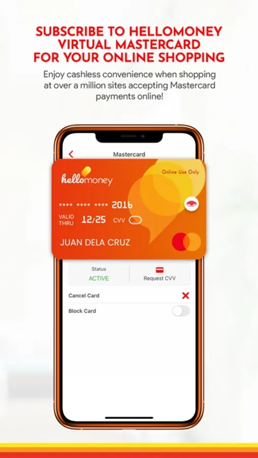 - Enjoy shopping online to over a million sites using HelloMoney Virtual Mastercard