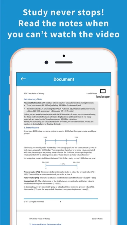IFT detailed videos help you to MASTER the exam curriculum. Each Learning Outcome Statement is covered, and examples are solved.
