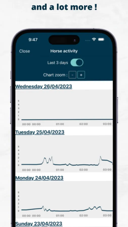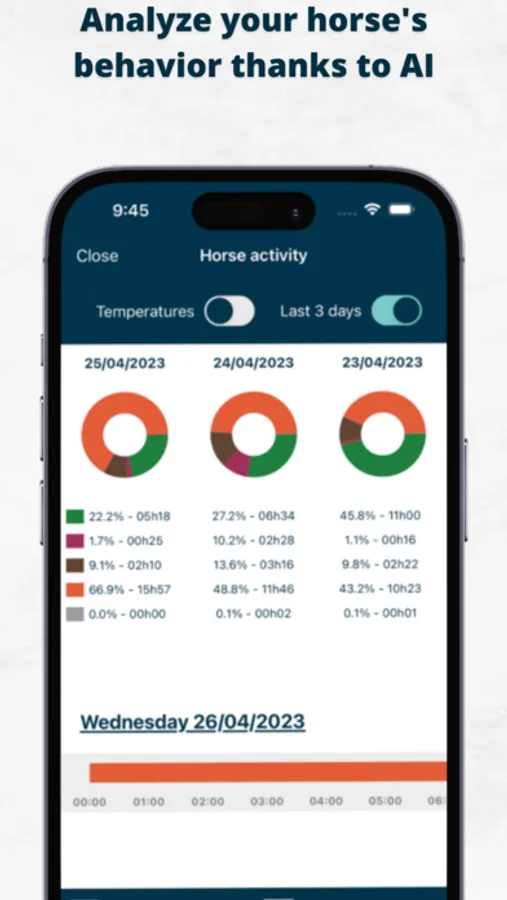 - An analysis of your horse's behavior and customized notifications in case of anomaly