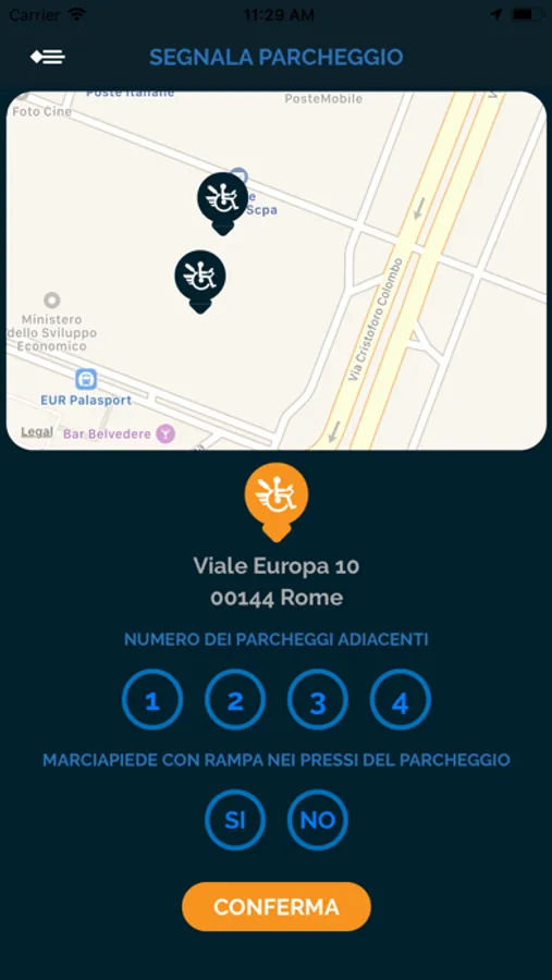 Puoi anche partecipare in modo attivo segnalando i parcheggi ancora non registrati o da aggiornare indicando i posti e la presenza o meno di rampe per l'accesso facilitato al marciapiede.