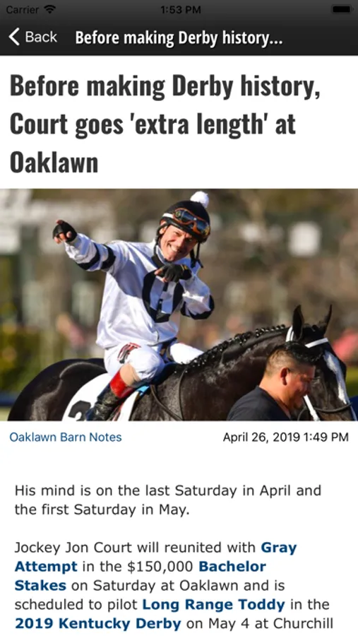 Covering Saratoga, Del Mar, Churchill Downs and the Kentucky Derby, Keeneland, Santa Anita, Gulfstream Park, Belmont Park, Tampa Bay Downs, Oaklawn Park, Arlington Park, Pimlico, Laurel, Woodbine, Monmouth Park, Golden Gate Fields, Parx Racing, Penn National, Charles Town, Turfway Park, Lone Star Park, Louisiana Downs, Fair Grounds, Evangeline Downs, Delta Downs, Sam Houston Race Park, Kentucky Downs, Presque Isle Downs, Emerald Downs, Hawthorne, Zia Park, Ruidoso Downs, Turf Paradise, Indiana Grand, Mahoning Valley, Sunland Park and more!