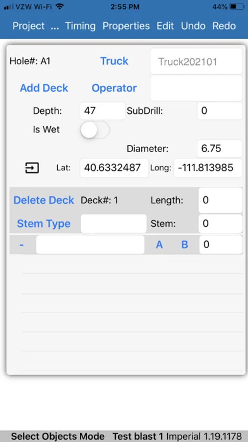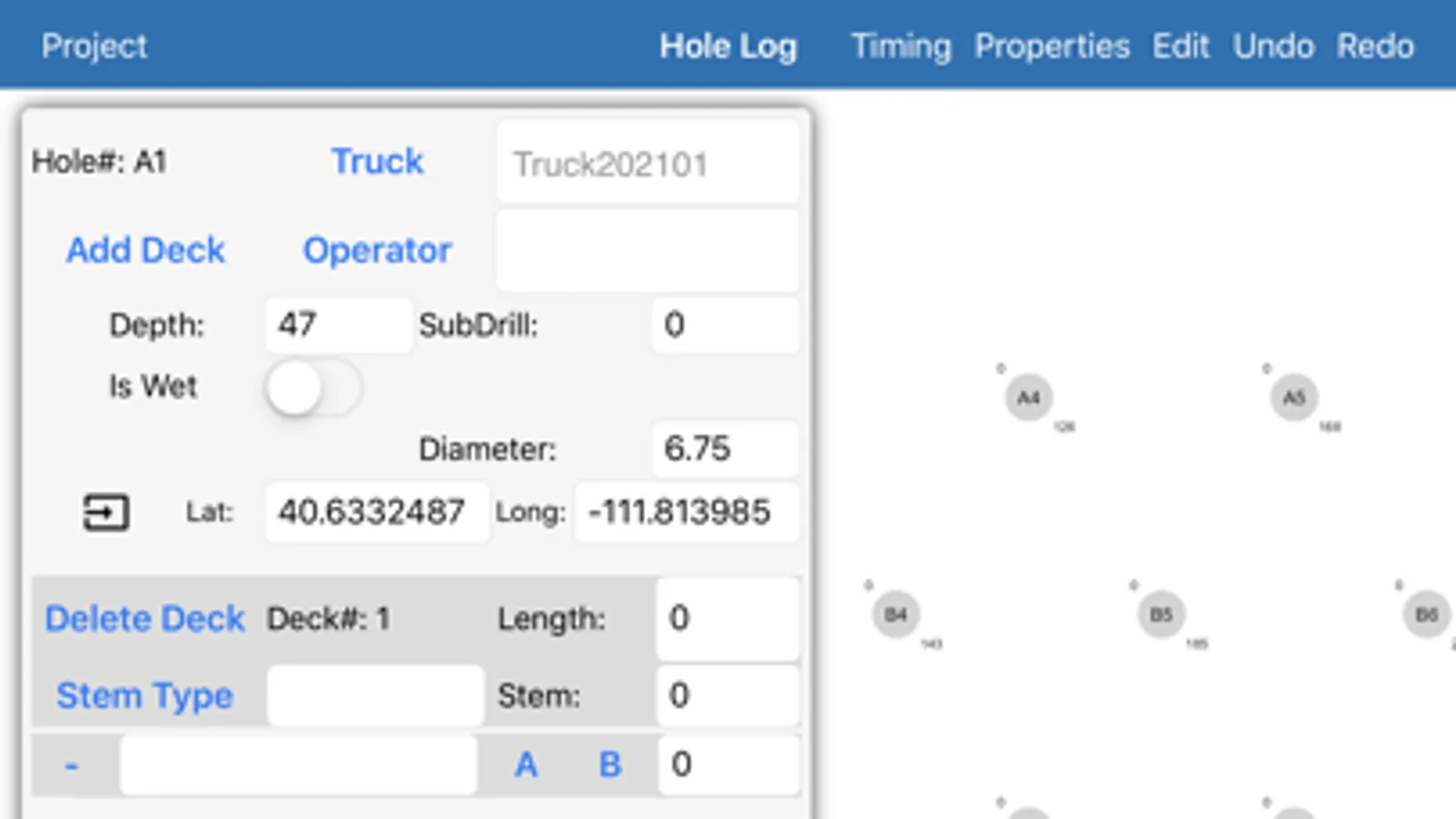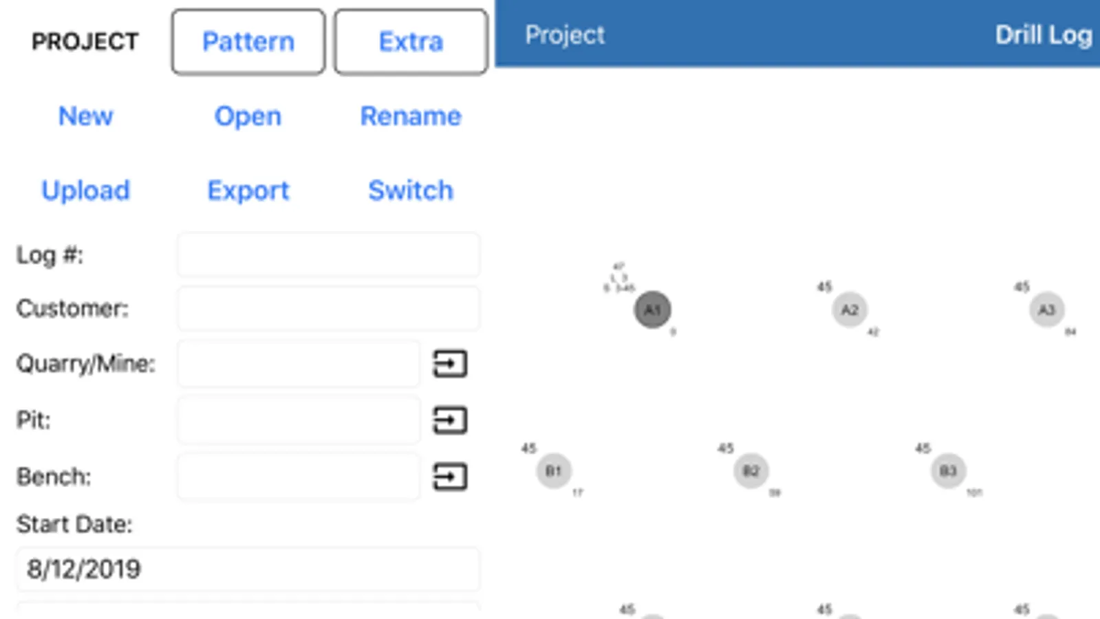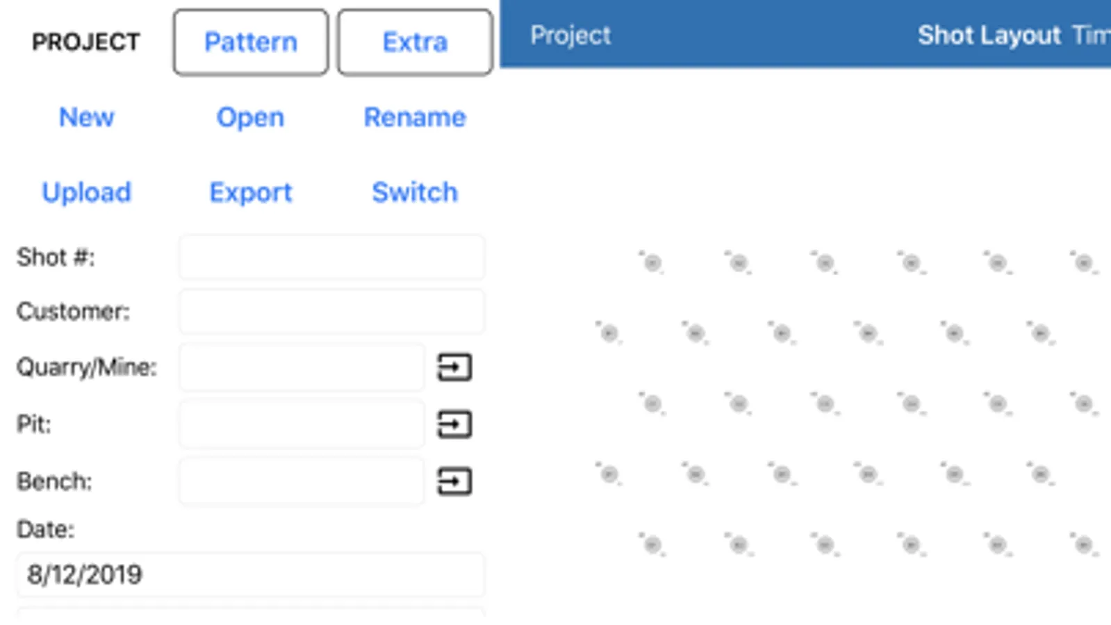 DynoMobile allows the blaster to design shots on a mobile device using absolute burden and spacing values or GPS coordinates. Complex patterns can be designed with the ability to add notations and drawing to the pattern. A created design can be shared with the blaster or driller electronically to track properties for each hole. This information can be uploaded to the Electronic Shot Report (ESR) to create the pattern and integrated with the EC200 to provide design, drilling and loading data for each hole.
