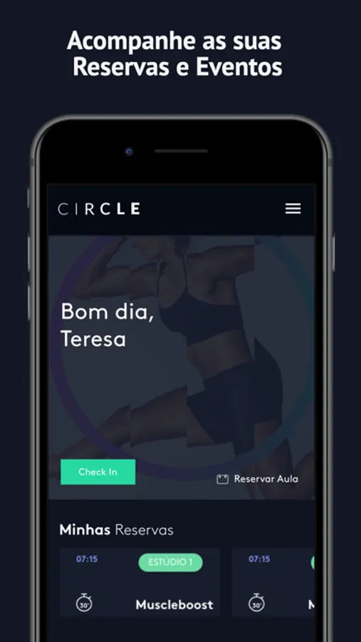 Aplicação Circle é exclusiva para clientes e membros. Ao ser um membro do ginásio Circle, poderá registar todas as suas entradas no Ginásio, fazer reservas de aulas e ter acesso a conteúdos e eventos exclusivos para membros do clube.