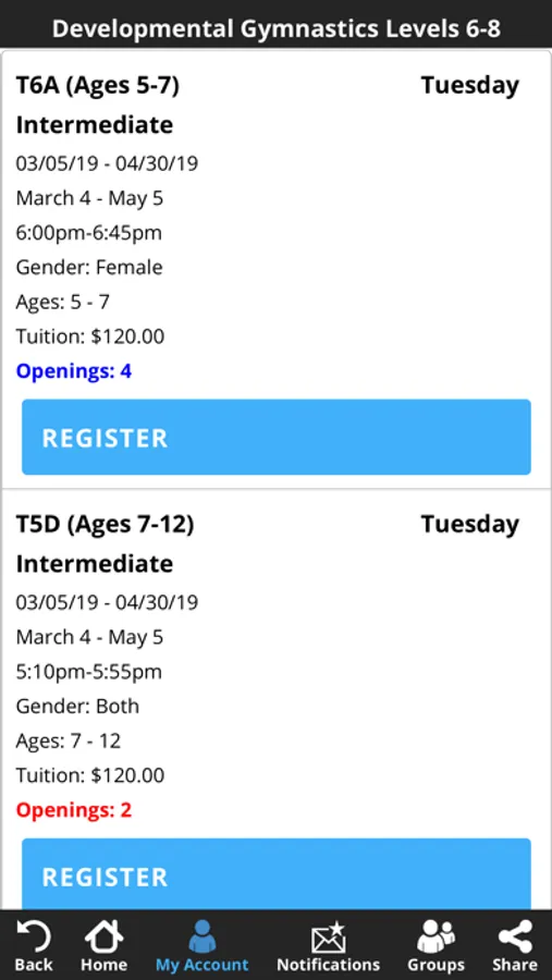 - Have a class in mind? Search by program, level, day, and time. You can register or even put yourself on a wait list.