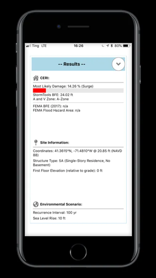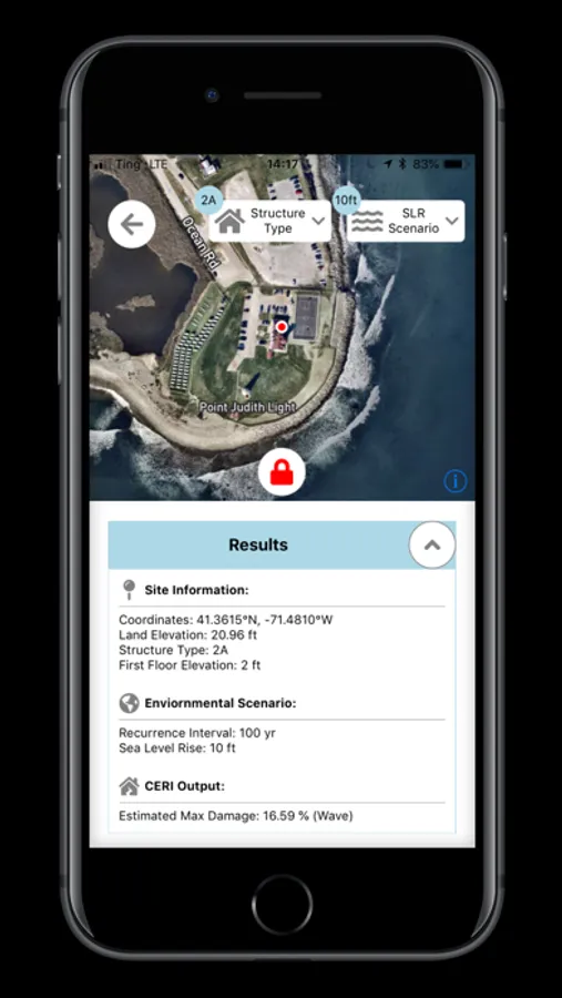 The STORMTOOLS app can be used to estimate the damage to structures from coastal flooding from the 100 year recurrence interval storm, with varying sea level rise, at user selected locations in Rhode Island.