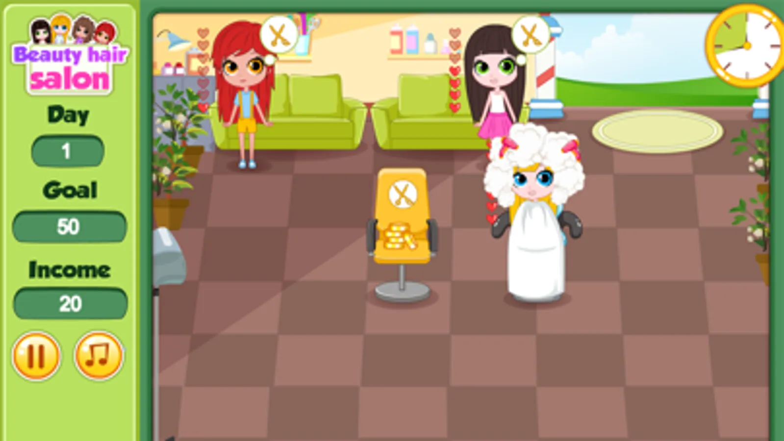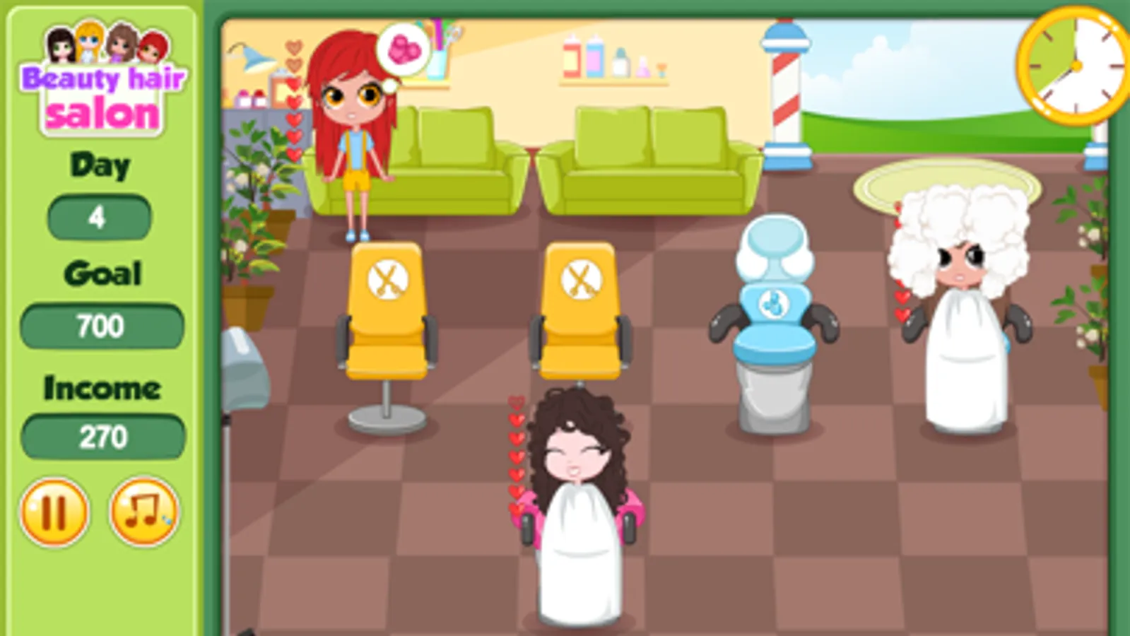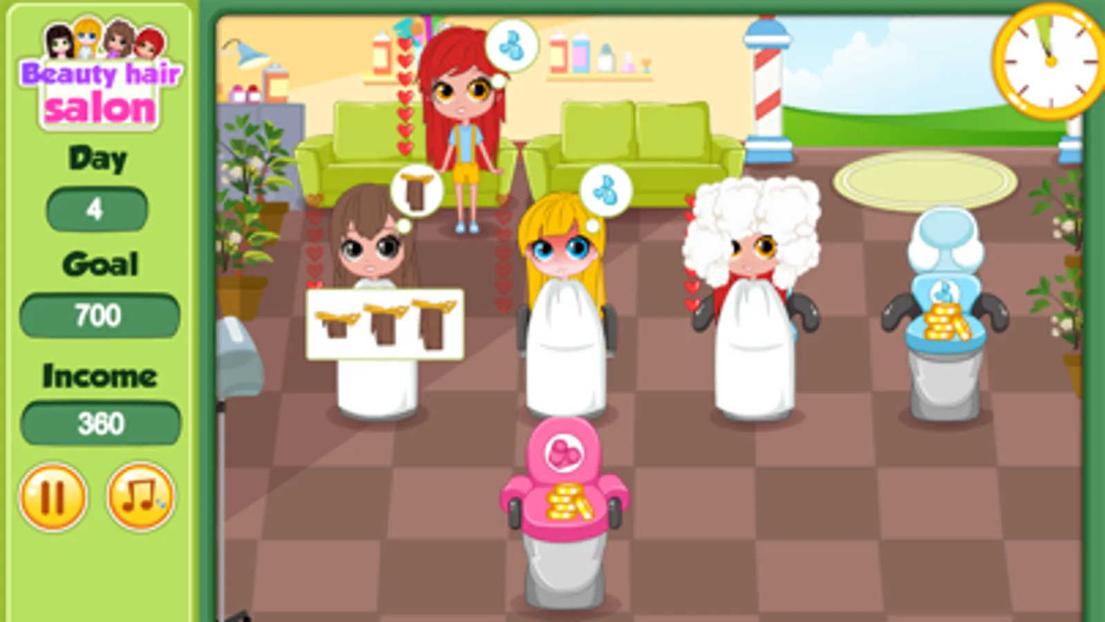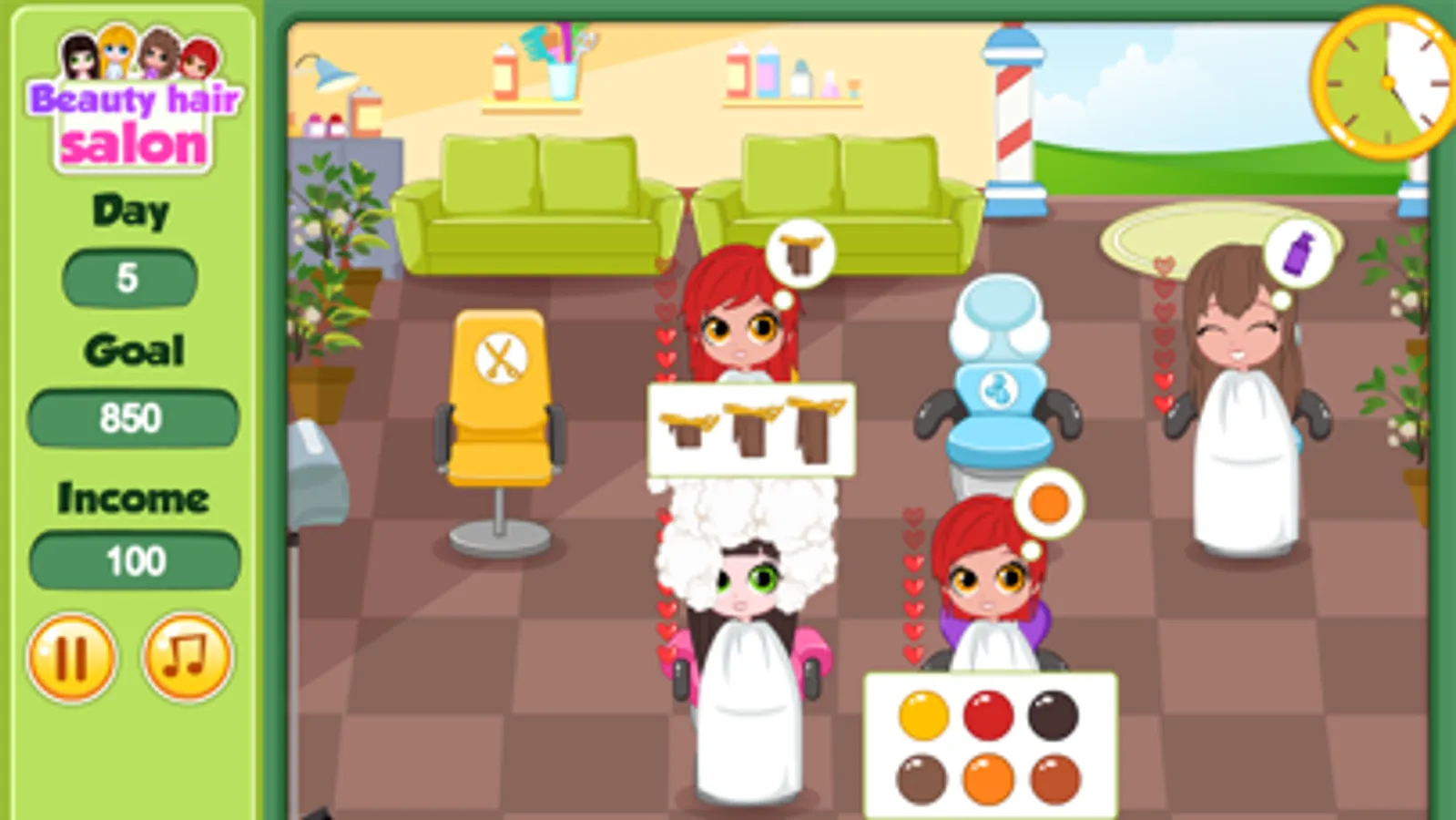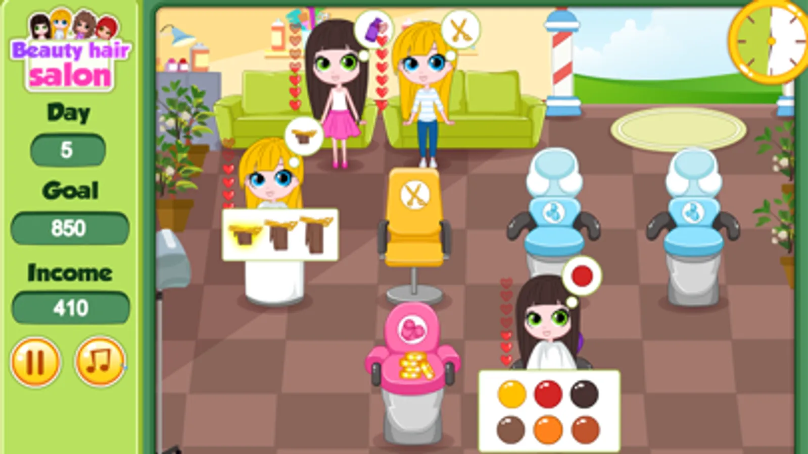 Get your entire customer pleased by giving them a beauty haircut or hair wash in this hair salon girl game. You get to try out different style and with spot-on management you will be rewarded with gold coins for your income, make sure you will be able to meet the goal for each game. Style the customer so they are happy and beautiful!
