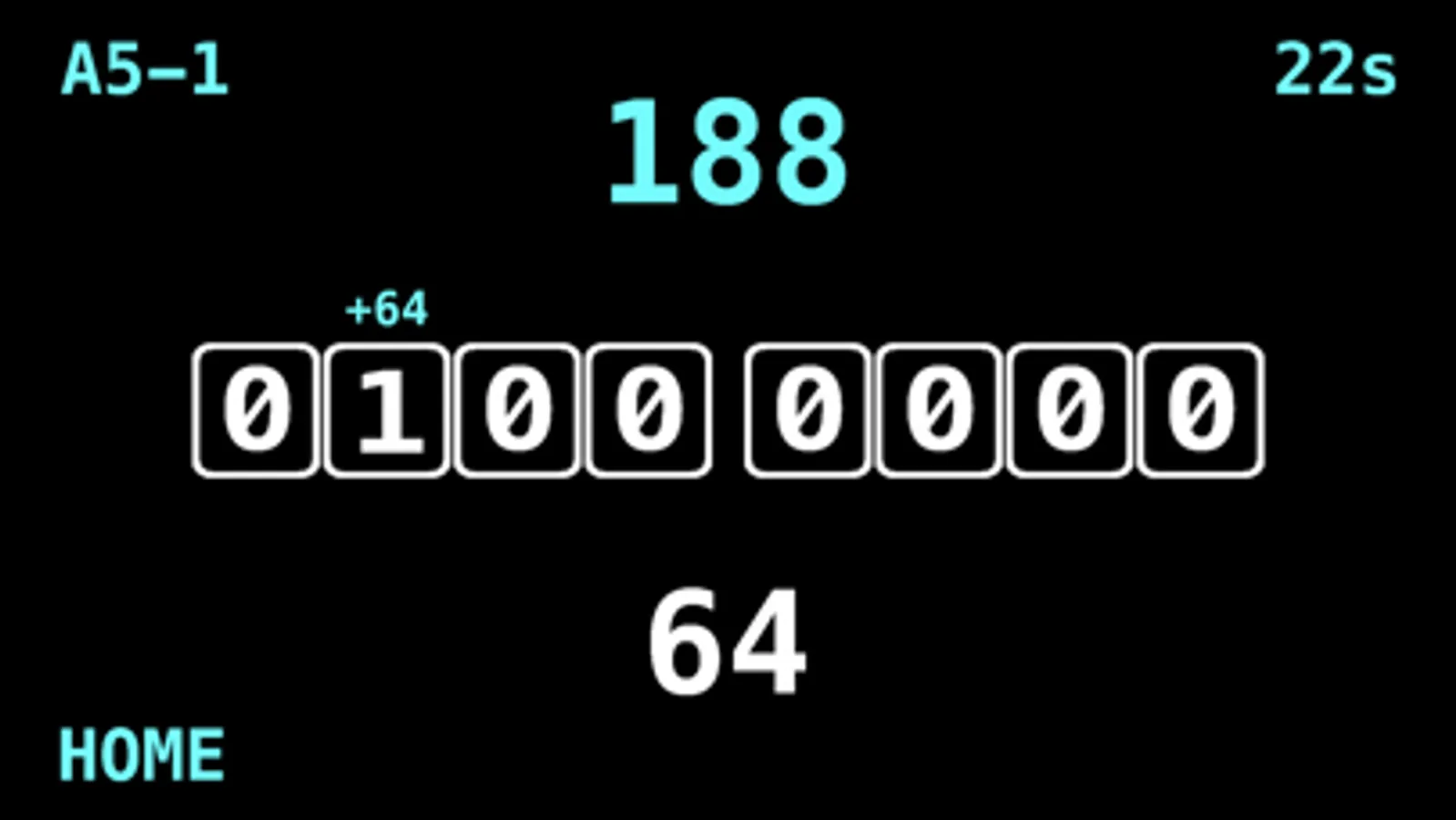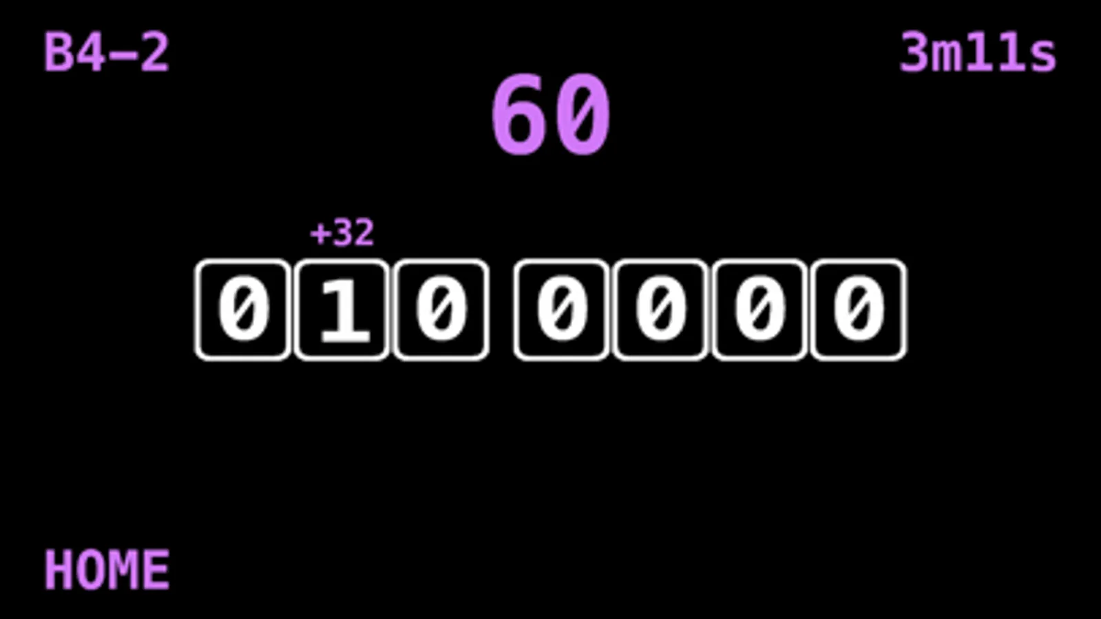 Bibinary is a game in which you must find the binary code of numbers. It's almost fun.