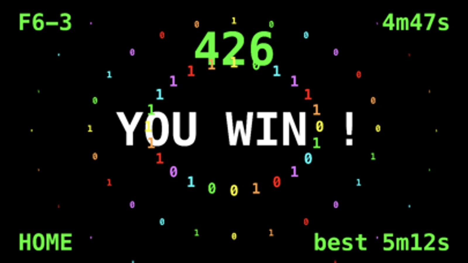 There is two modes : the time mode and the infinite mode. In the time mode, you have a limited time (40s) to find as many binary codes as possible. You can start at the level you want (from the lowest level to the highest already reached level). In the infinite mode, you always start at the lowest level and you must go as far as possible. You win when you pass F6. In both modes, the highest reached level appears on the home page.
