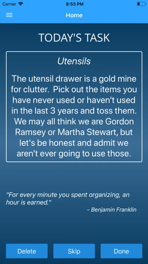 TOSS is a fast and easy (once-a-day) way to declutter nearly all of the living spaces in your home! In less than few minutes a day, you will feel and see results as you clear away clutter and unused material objects. You can use this app over and over since every completed cycle of TOSS promotes a happier and more minimalistic lifestyle.