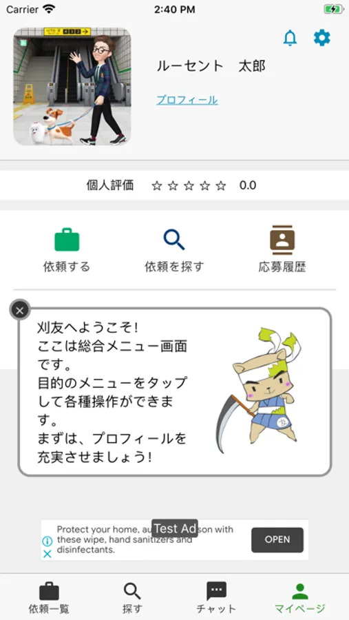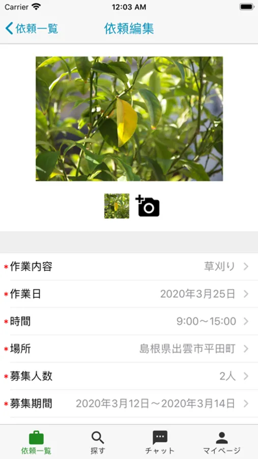 1. 草刈り依頼者は、作業条件(日時・場所・報酬等)を入力し、