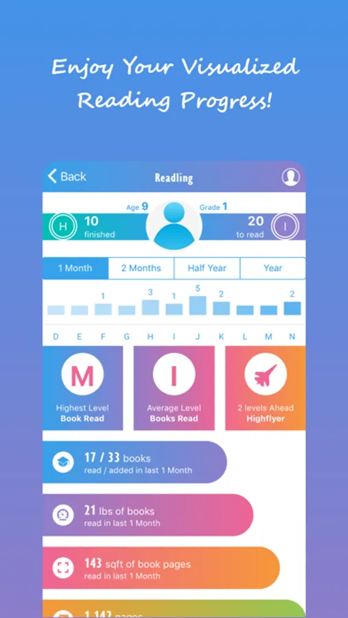 - Grade level reading benchmarks (from the grade info updated in profile) and where your child is;