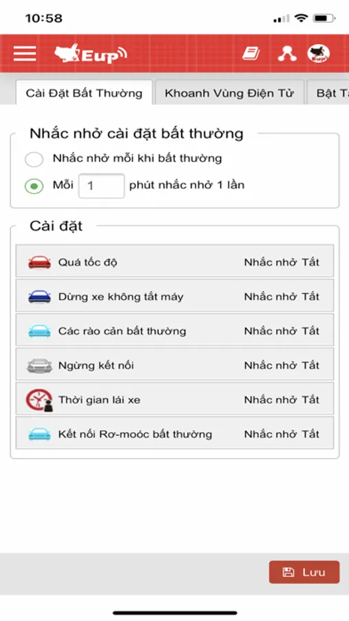 Hệ thống giám sát hành tình Eup giúp bạn quản lý tình trạng thực tế của xe, với những tính năng chính sau: