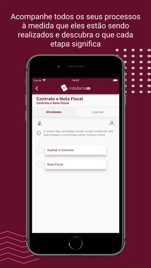 • FLUXO DE ATIVIDADES: Acompanhe todos os seus processos à medida que eles estão sendo realizados e descubra o que cada etapa significa. Navegue pelo fluxo, detalhe as atividades, tenha a visão do processo completo na palma de sua mão.
