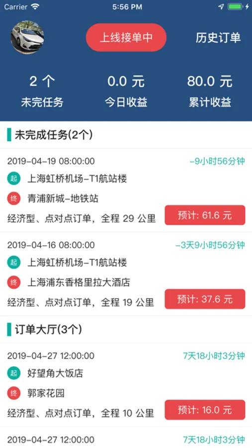 1.操作简单:司机提交材料,审核通过即可点击“上线接单”;