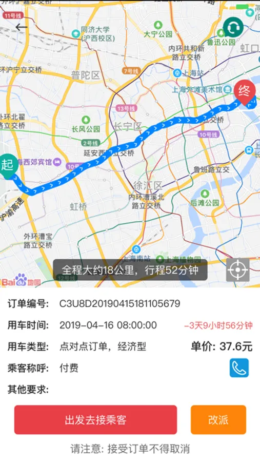 3.订单信息全面:有专业的地图路线规划,起始点终点导航,全程公里数,行程耗时等;