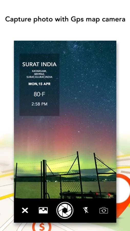 Track Live Location along with your captured photos by GPS Map Camera. Send your Geo Location of street/place added photos to your Family & Friends, and let them know about your best Earth travel moments.