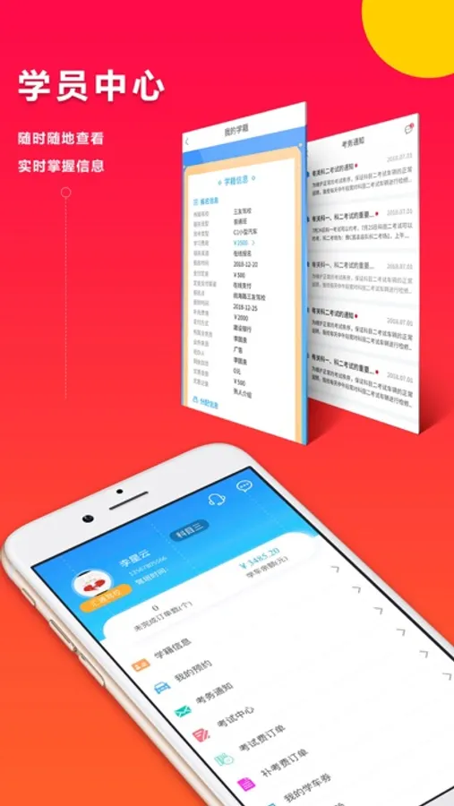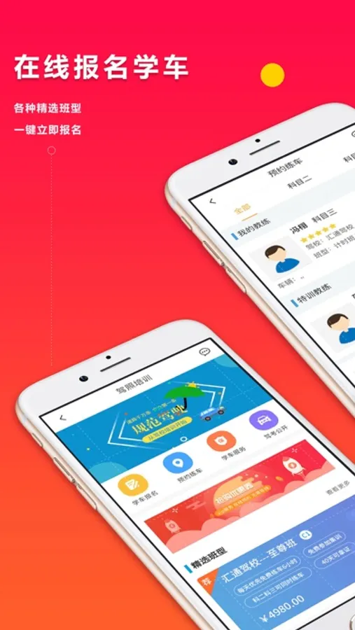 为用户提供附近的驾校可供学习车辆驾驶的报名,提供学员在线查看考试信息,在线进行练车的预约,支付练车的费用,查看最新的进度信息和通知信息。