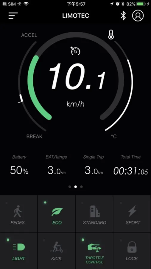 LIMOTEC EBIKE is an application to connect with your mobility product. Via bluetooth connection, your mobility device can transfer all the riding information and system status to your mobile device. Then your mobile device turn into an interface to control and display for the mobility device. The main function of the application are