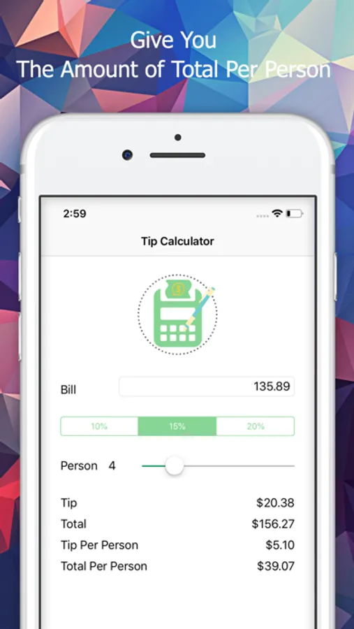 EasyTiip lets you enter a bill total. Calculates and displays the tip amount and total bill for three common tipping percentages - 10%, 15%, 20% and custom tip percentage. Includes the ability to split the cost up to 20 people and also display tip per person and total per person for your convenience.