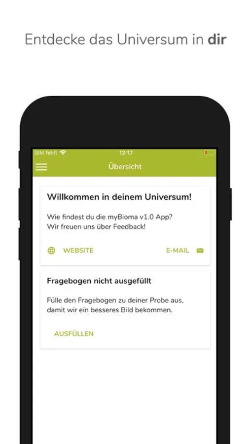 To use the full scope of the app, order a myBioma intestinal microbiome analysis now at www.mybioma.com or in the myBioma app.