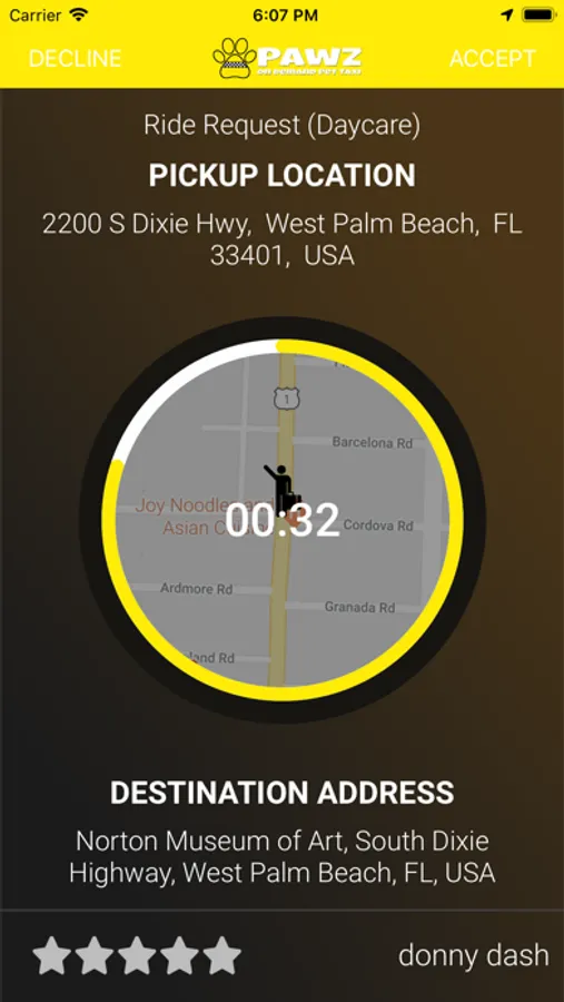 We'll guide you through the registration process and once approved as a pet-friendly driver, you can accept or decline ride requests as they roll in.