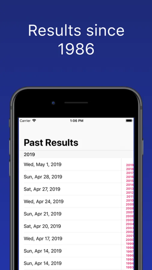 Our app is bundled with 33+ years of winning numbers, all the way since 1986. You can search and analyze them offline. Internet is NOT required.