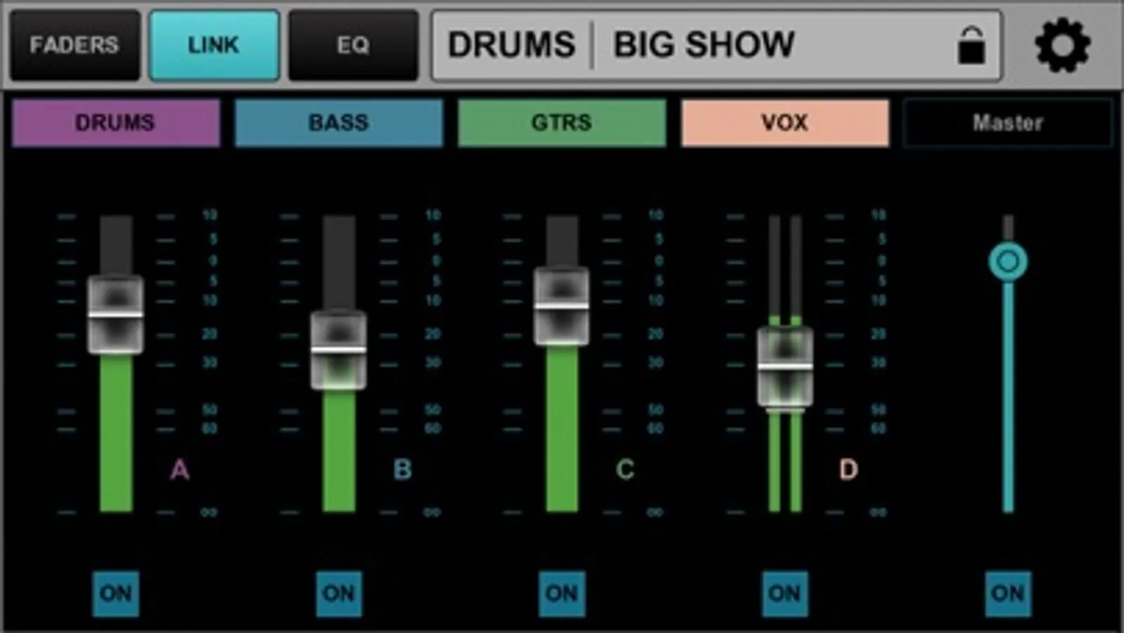 • Assign any combination of channels to four LINK masters; each with volume level and mute toggles