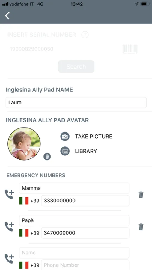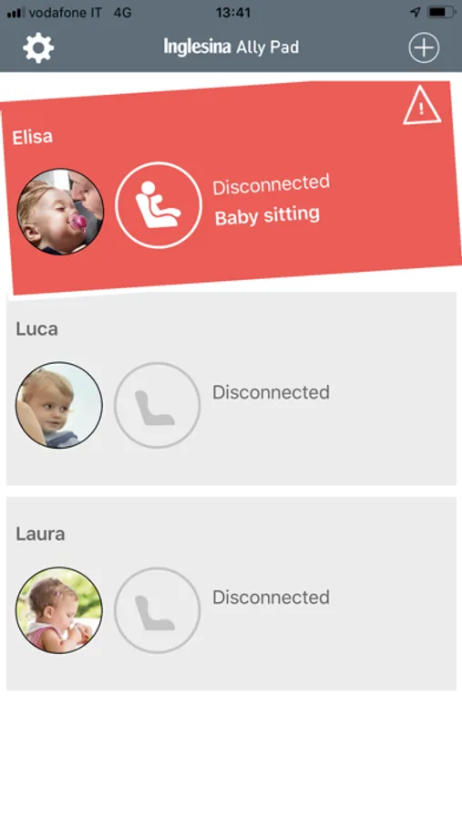 Warns the user, with a visual and sound alarm on the smartphone, in case he moves away leaving his/her child sitting on the seat. In case of no reply, the App sends an SMS to pre-set contacts with geographical coordinates.