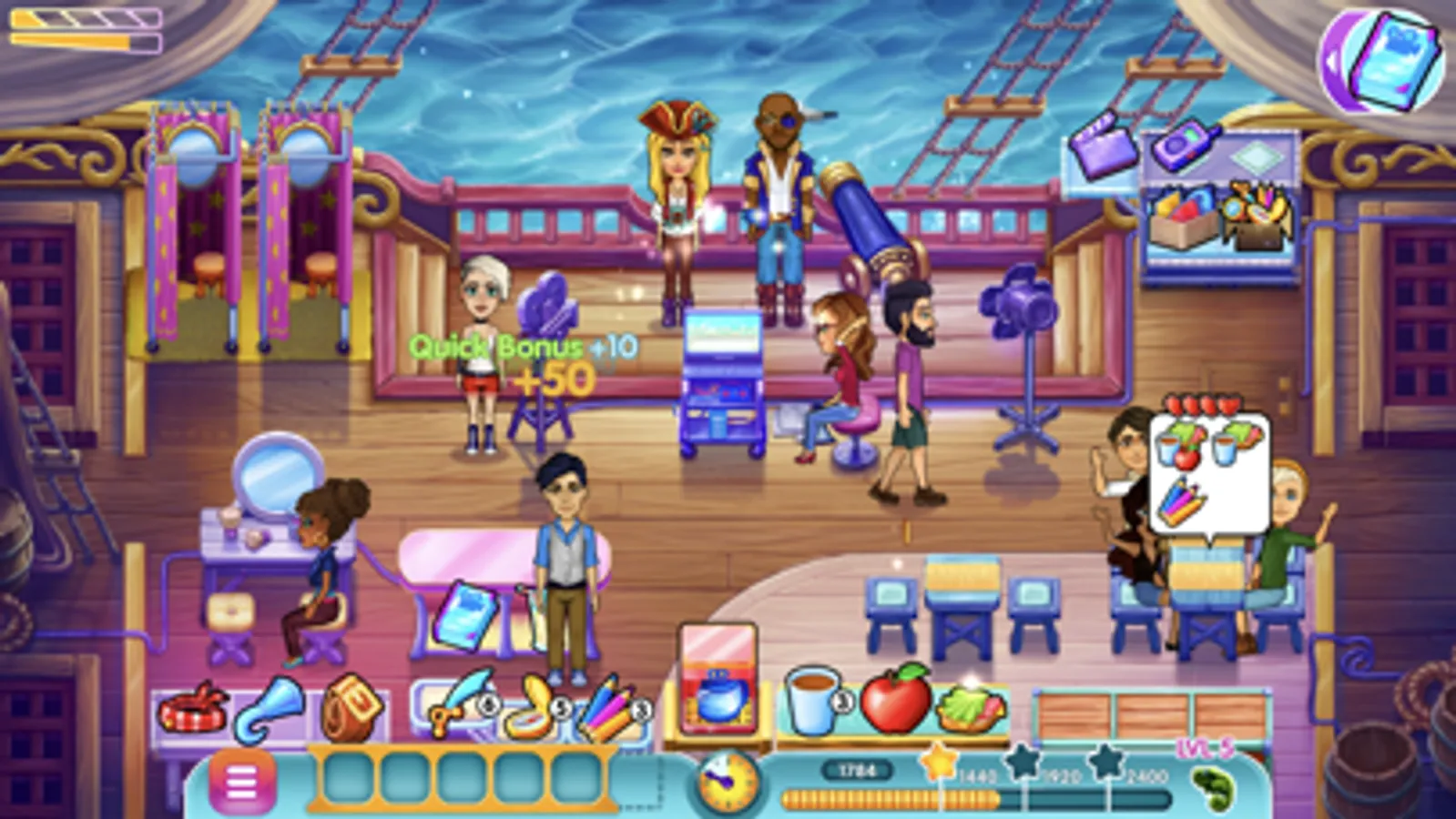 What she needs is someone with time management skills! Are you game? Can you help her with the myriad tasks she has to perform? They will include directing actors, assisting the crew as well as arranging every detail of the sets from a pirate ship down to flowers!