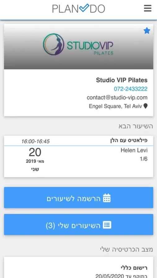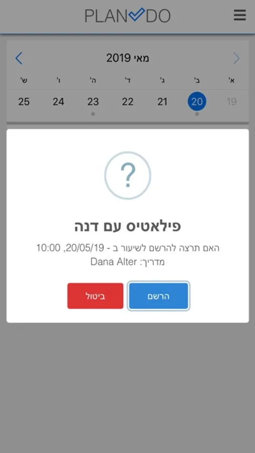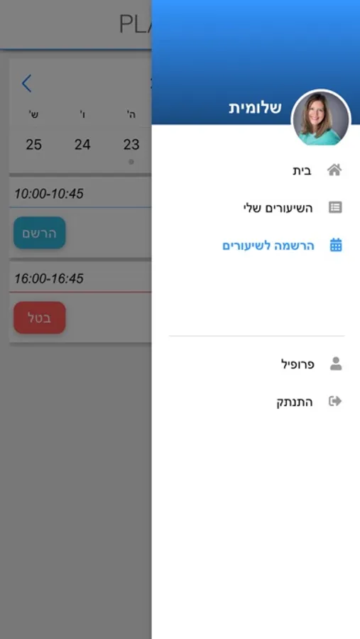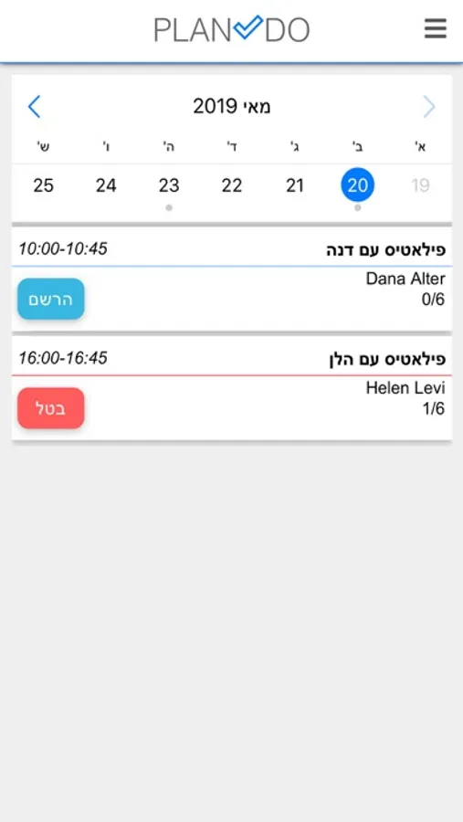 אפליקציית פלנדו קונקט תאפשר ללקוחותיכם לצפות ולהרשם לשיעורים מתוך יומן הפעילות.