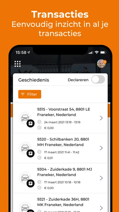 Transactiehistorie: Inzicht in al je transacties. Handig voor je eigen administratie of om transacties te declareren bij je werkgever.
