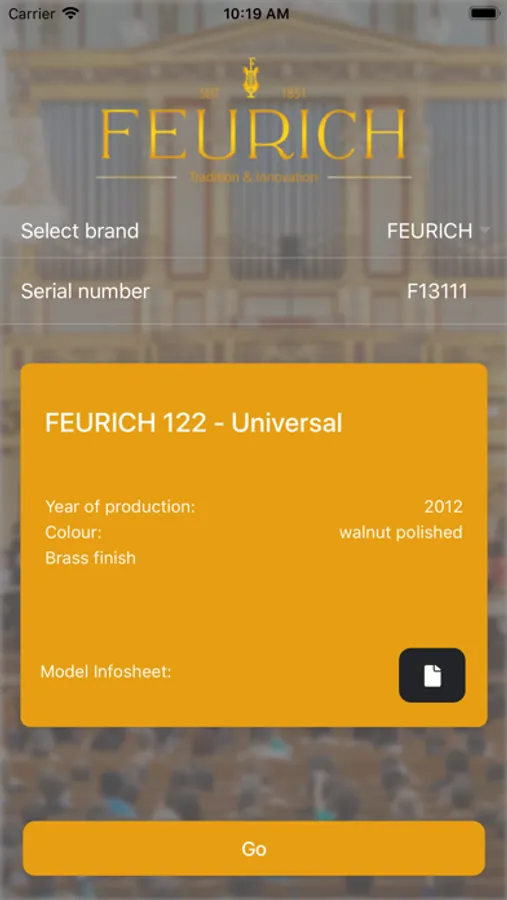 Choose the brand name and type in the serial number of your piano.