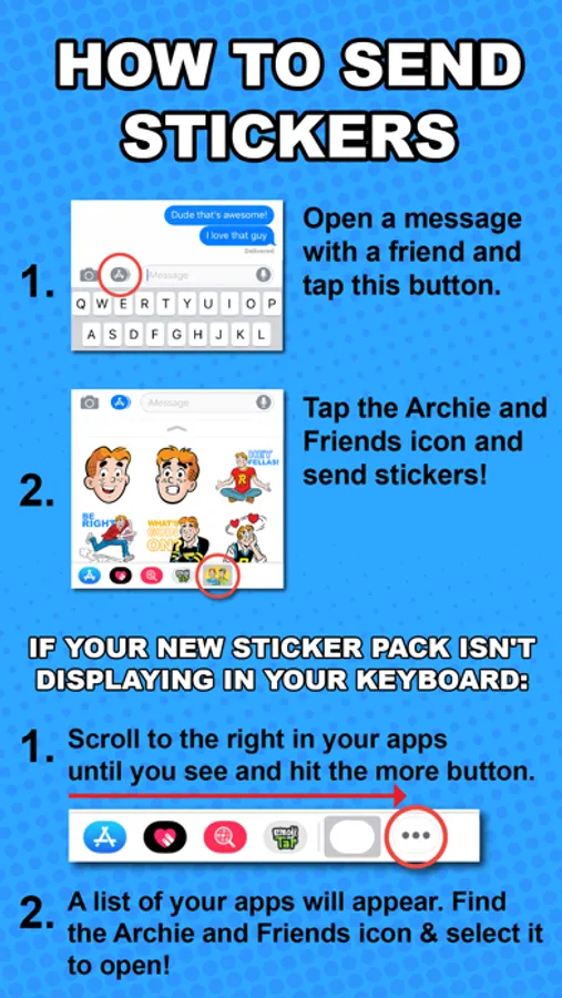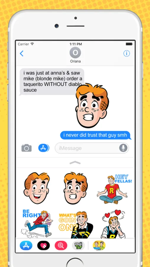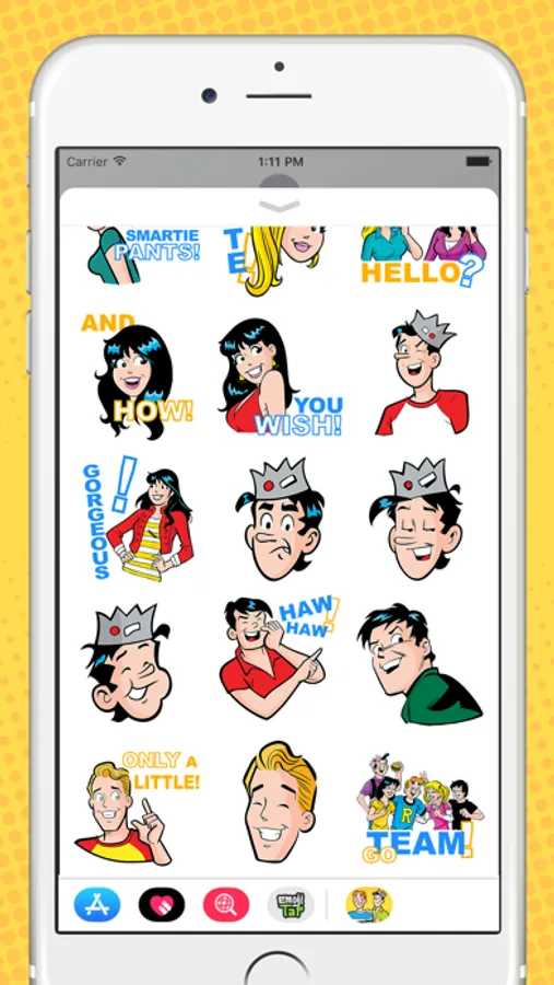 Feel like a part of the Riverdale High gang with these stickers, based on Archie Comics! Add fun flair to your messages and get your tone across in the unique way that only Jughead and the gang could manage. Includes 24 static stickers.