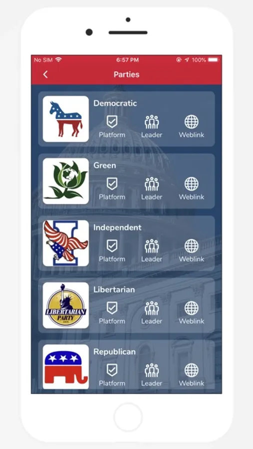 A non bias political app that informs the user/voter about their representatives, the parties and platforms, potential candidates and their platforms and much more!