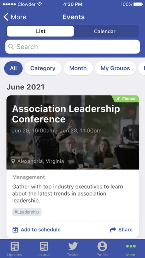 This app will keep the Academic Pediatric Association (APA) members connected year-round. APA members and non-members will have access to events, content and collaboration tools in addition to a member directory, private messaging and account management.