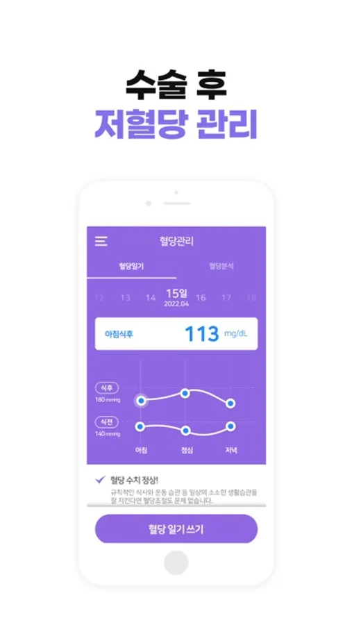 • 혈당관리: 직접 또는 블루투스 혈당계를 통해 혈당일기를 작성하고 관리할 수 있습니다.