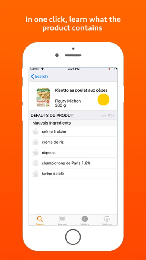 MICI Nutrition allows you to immediately see if a food on your list is part of the composition of the scanned product.