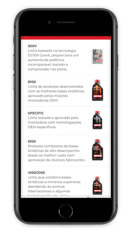 O aplicativo MotulExpert é um guia que reúne informações completas sobre todos os produtos disponíveis no catálogo da marca. Além disso, a seção “Guia de Aplicações” te ajuda a escolher o produto certo para o seu veículo com opções personalizadas, tendo informações como o modelo, marca, ano e versão do automóvel ou moto.