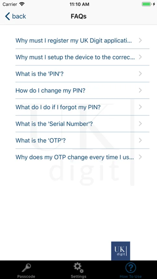 After downloading and installing UK Digit on your iPhone, you will need to register it in order to activate it and make it unique for you. Your service provider will provide you with appropriate registration instructions.