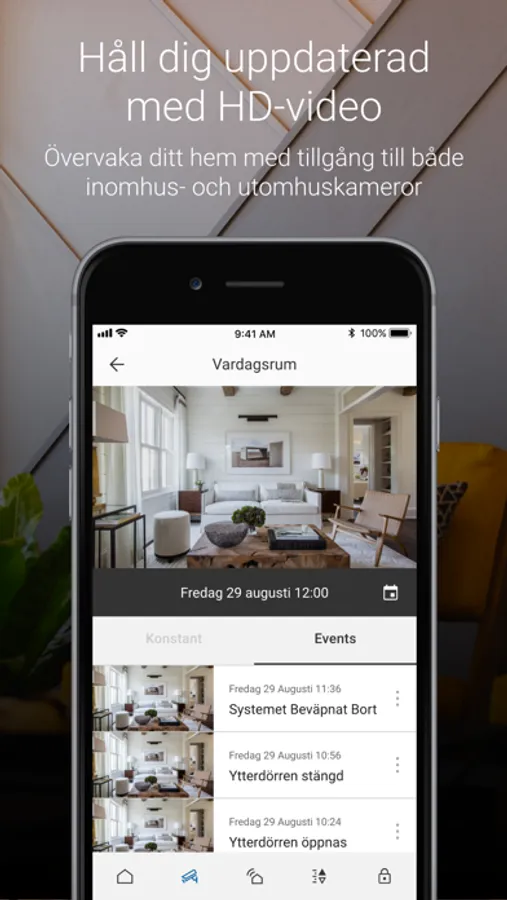 Ta emot real-tids notifieringar när du larmar på och larmar av med appen. Få direkt notifiering när det går ett larm eller när en familjemedlem kommer hem.