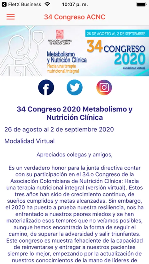 34 Congreso 2020 de Metabolismo y Nutrición Clínica, donde podrán encontrar: