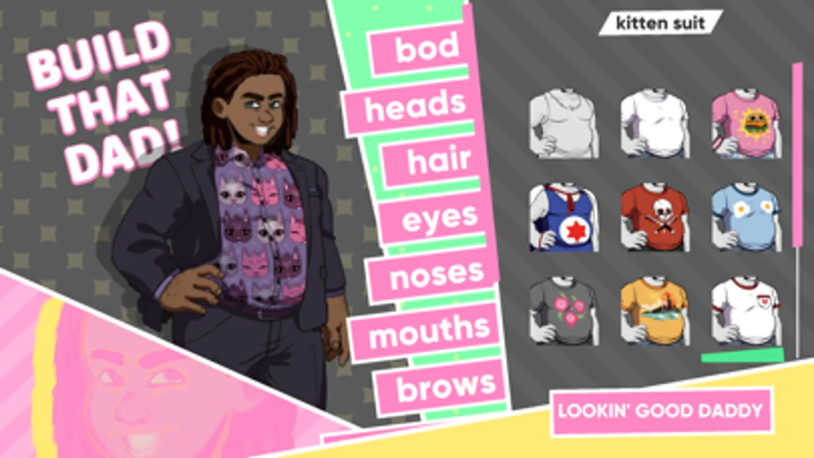 Dream Daddy: A Dad Dating Simulator is a game where you play as a Dad and your goal is to meet and romance other hot Dads. You and your daughter have just moved into the sleepy seaside town of Maple Bay only to discover that everyone in your neighborhood is a single, dateable Dad! Will you go out with Teacher Dad? Goth Dad? Bad Dad? Or any of the other cool Dads in this game? With minigames, sidequests, and a variety of paths and endings, Dream Daddy: A Dad Dating Simulator is this year's most anticipated Dad-based game.