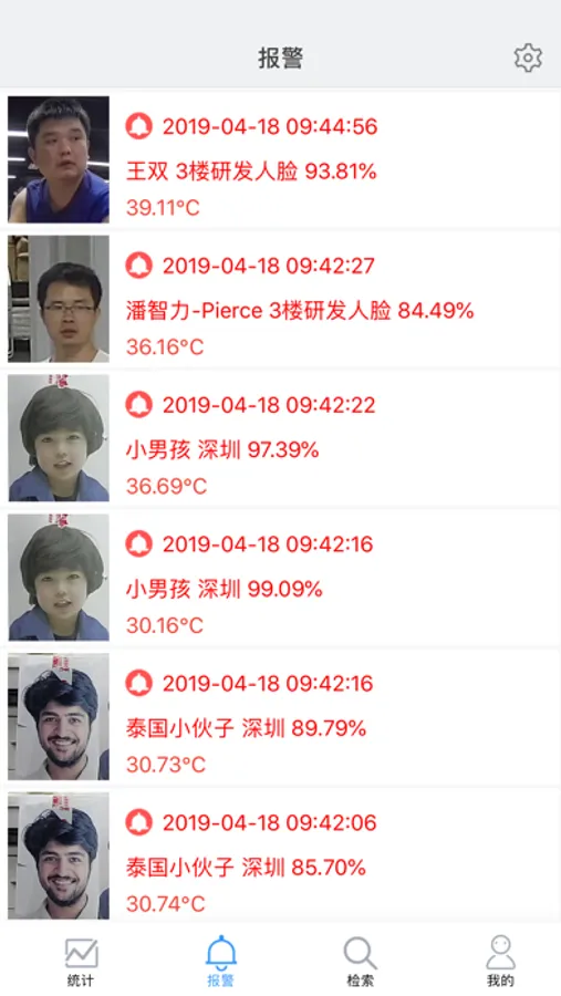 人体温度数据,并通过人体温度数据汇总统计、实时报警、人员历史体温检索等方式展示出来。