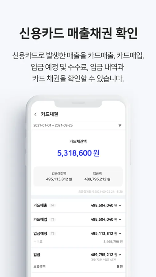 카드로 발생된 매출을 여신금융협회에서 카드매출승인내역, 카드매출 입금현황, 카드매출 입금예정현황, 카드매출 입금누락현황을 자동으로 저장해서 카드매출을 조회합니다.