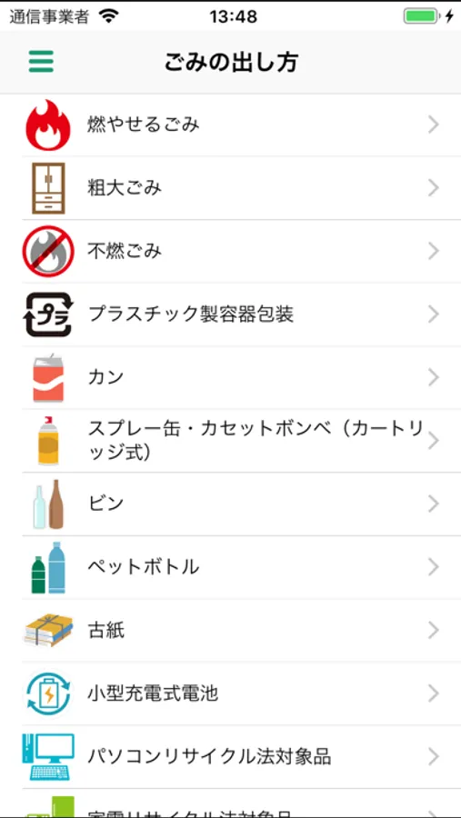 ごみの種別ごとに、主な品目と出し方を確認することができます。