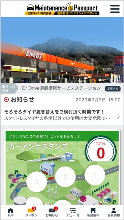 カーメンテナンスご実施ごとにスタンプを貯めることができます。