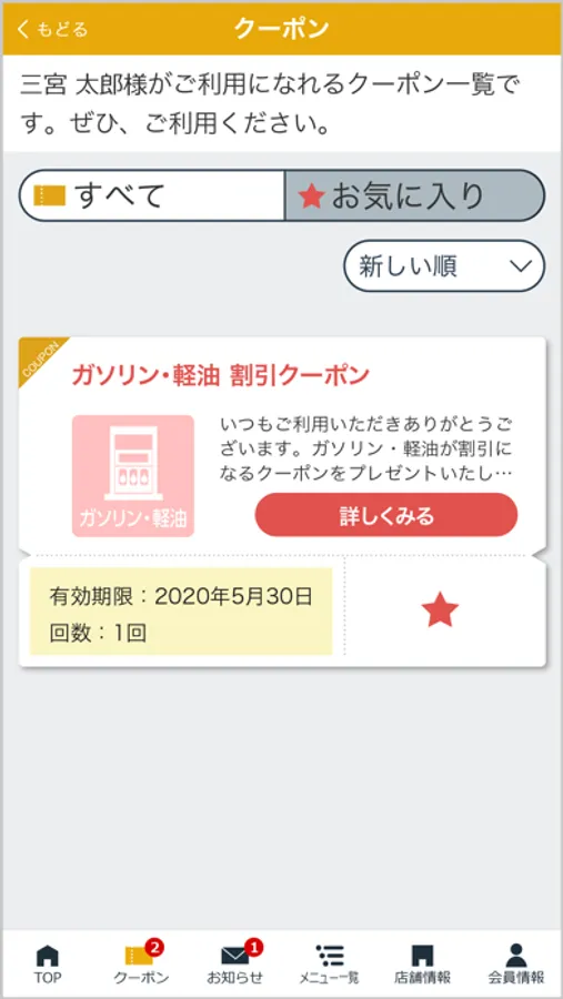 当社の公式アプリ「三宮オイル-愛車管理-」ではアプリで簡単に洗車・コーティングなどのご予約、ご登録いただいた店舗で利用いただけるお得なクーポンや各種メニューの割引情報の配信、カーメンテナンスご実施ごとにスタンプが貯まり決められたスタンプ数を貯めるとお得なプレゼントクーポンと引き換えができる貯めて楽しいもらえて嬉しいお得なアプリです。