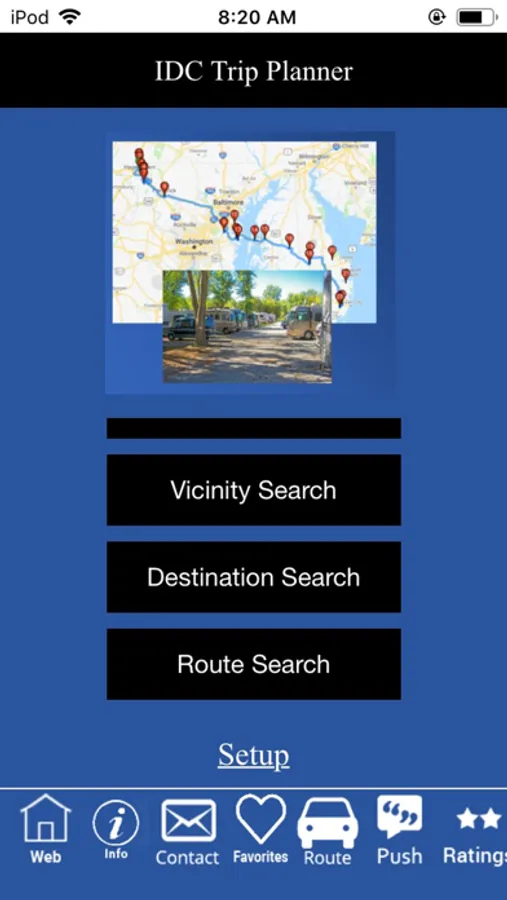 The IDC Trip Planner has also added a number of valuable, mobile-driving features that will help you find participating RV Parks while traveling in your vehicle. These features include: